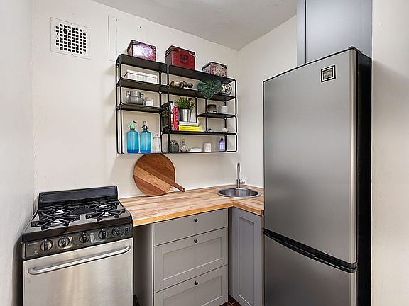 A classic studio in a classic brownstone on a classic Park Slope block. Come fall in love with this outrageously charming, renovated co-op just a block from Grand Army Plaza and around the corner from Prospect Park. Prewar details include hardwood floors, deep moldings, high ceilings and bay front windows with original shutters overlooking the tree-lined street. Exposed brick adds to the charm. The efficient layout allows for living, sleeping and dining - there's even space to work from home! The bathroom features a deep soaking tub and fresh subway tiles. The kitchen makes use of a small footprint with deep storage drawers, newer stainless appliances and tall open shelves. If you're looking for a starter apartment, are downsizing, or just want a turnkey perch close to everything that makes Brooklyn so wonderful, this might be the place. All of this in an intimate, pet-friendly, professionally managed co-op with laundry room and additional storage. Make your appointment today. Co-broking agents are always welcome.