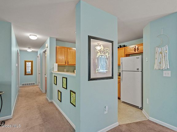Very well maintained 2 bed/2 full bath Condo in a 55+ living community. This first floor unit has been freshly painted and features an open concept living room, dining area and kitchen. It has central air, a charming gas fireplace in the living room, and a laundry space with washer and dryer. The home has a one-car garage, off street parking, and a private back deck to enjoy your morning coffee. Close to local amenities! HOA is $250/mo and includes snow removal, trash pick up and maintenance of the grounds.