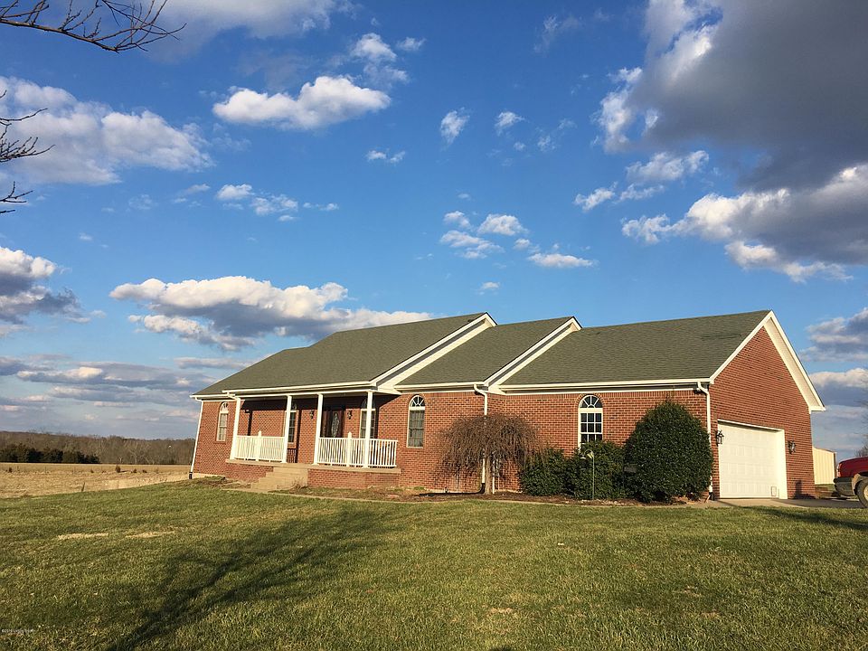 Contingent upon inspections and financing. Back up offers are welcome. Welcome to this 2000 SF Ranch home with 4 BR, 2.5 Bath, finished walk-out basement. Beautiful Kitchen with an island/sink, pantry, dining area open to the vaulted great room. Mstr BR w/trey ceiling, 2 closets, MBath with double sinks, spa tub, lg shower, tiled flooring. 2 Bdrs with lg closets. Entry foyer, office nook and a laundry rm w/marble counter/sink, built-in bench,subway tile & cabinets. The walk-out fin. bsmt offers another room used as a BR, open area for entertaining and unfin. area for storage. Large deck out back of kit. 2 Car att. garage. 3 Ponds, Equip.shed 24x72, tobacco barn 42x60, utility bldg 34x36. Crossed fenced for cattle. wood burning stove. Main rooms updated w/eng. HW handscraped flooring. Bsmt has flue for stove. Alfalfa fields. 2 waterers. Home has 9 ft ceilings, bsmt has 8 ftFlooring in laundry room, kitchen, great room, hall. Carpet in the bedrooms. Baths are tiled. Lower level offers half bath with tiled floor, a room with closet used as a bedroom but does not have a window or exterior door. Large open space for entertaining with built in book shelves. There is an area by the window that can be framed in for another bedroom. The kitchen cabinets are maple and the countertop highmax solid surface. Tiled backsplash. Pantry. Laundry room has subway tile, marble countertop and a sink, built in bench and cabinets just off from the garage, and outside large deck. Updated the hardware with blackened knobs and hinges, hardwood flooring is within last few years, replaced patio door with upgraded sliding door with built in blinds, crown molding as well. AC unit was installed last year. Age of hot water heater is newer than the home but not sure when it was put in. Furnace is age of the house. Owner insulated interior wall between bedrooms and bath and master to cut down on noise, insulated between flooring to basement, as well. This is a working cattle farm. Pastures are crossed fenced and there are two waterers for the cattle. 3 ponds.