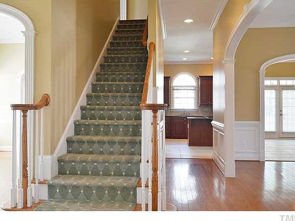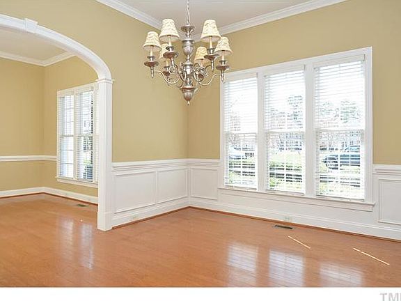 Cary convenience & charm!10' ceilgs, arched drwy, gorgeous trim work, fresh paint & gleaming hrdwd flrs th-out much of 1st FL & 2nd FL hall. Kitchen loaded w/granite, custom cabs, bar seatg plus lrg brkfst area, decrtr bck splsh & tiled FL. Cov'd 'morning porch' w/slate FL. 2nd FL 2 lrg bdrms w/private baths, office/hobby room & bonus rm. Great storage!See agent remarks