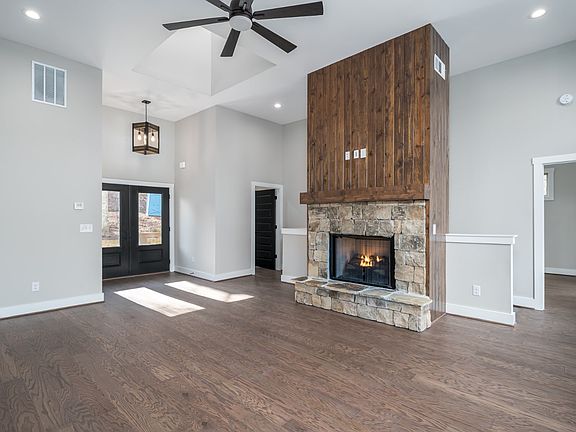 Join Covered Bridge Estates, Ellijay's premier gated community, in a beautiful new home! This exquisite 3 bedroom, 2 bathroom home overlooks Flat Creek, and includes a two-car garage right off the kitchen, as well as your Master-Suite on the main level. The spacious kitchen includes stainless steel appliances, tiled backsplash, gorgeous cabinets, and an island that opens up to the inviting living space. With an indoor fireplace, incredible forest views, and tons of natural light, the great room is sure to delight and is perfect for entertaining. There is also a flex room (bedroom/office) on the main level. Step out onto the amazing deck to enjoy mountain living to the fullest with an outdoor fireplace overlooking the beautiful creek. The basement includes two bedrooms and a full bath, lots of storage and a secondary gathering space with a beamed ceiling. Enhanced Landscape recently completed. Covered Bridge Estates provides a heavily landscaped drive to a gated entrance, paved roads, underground utilities and close proximity to downtown Ellijay, Carters Lake, vineyards & all that North Georgia has to offer. No STRs are allowed in this community.
