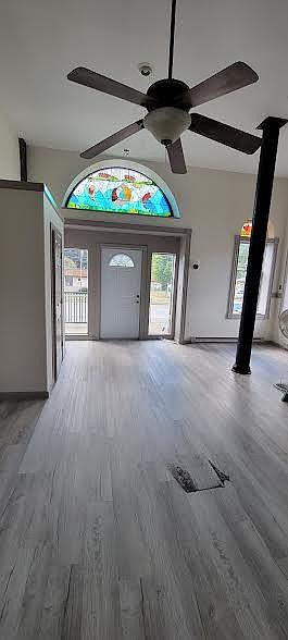 The Bloss Town Hall has been completely remodeled and repurposed for a unique, contemporary apartment living experience in downtown Blossburg. Suite #6 is a two-bedroom, first floor unit featuring an open kitchen and living area. High ceilings add to the roomy atmosphere. Affordable and very convenient location within walking distance to stores, school, park, medical facilities, etc. New stackable washer and dryer just installed. Tenant is responsible for electric, but all other utilities are paid by the owner. Immediate possession available. No smoking and no pets allowed. Security deposit required.