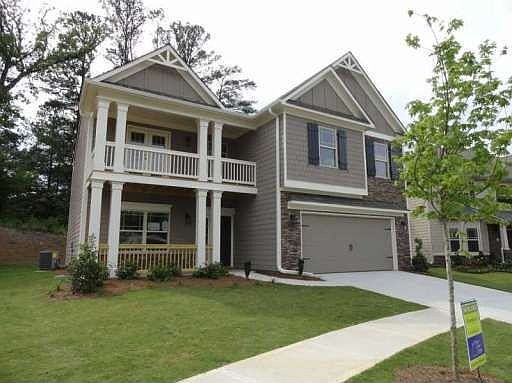 Immaculate home that is "2 years new" in quiet neighborhood minutes from 575. Craftsman style house on the largest premium lot in the subdivision. Upgrades galore including stone front, extended patio, plantation shutters, custom blinds and iron spindles. Beautiful kitchen with hardwood floors, granite countertops and stainless appliances. All 4 bedrooms have large walk-in closets. Guest bedroom with french doors leading to private balcony. True walk-in laundry room & storage space. Brand new fenced backyard. All this just steps from the pool. Truly a must see