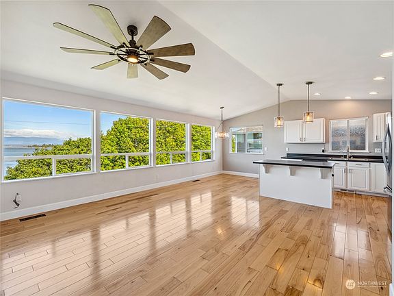 Discover the epitome of comfort and convenience with main level, great room style living offering stunning views of the Fidalgo Bay waters, Cap Sante, the marina and beyond. Imagine waking up to panoramic views, where every sunrise paints a new masterpiece across the horizon. The downstairs oasis, boasts a spacious family room and an additional suite. Keep your active lifestyle organized with a dedicated workout gear storage room, complete with exterior access for added convenience. Outside, immerse yourself in the tranquility of beautiful landscaping and a lovely stone fire pit, fully fenced yard and just a moment to downtown amenities & the coveted Tommy Thompson Trail. Expenses stay low with the recently installed and paid for solar.