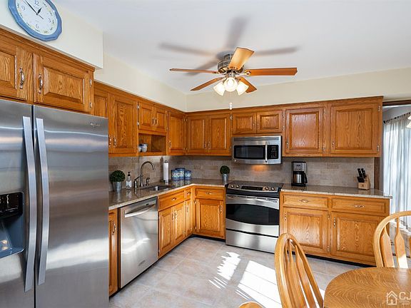 Move in Ready! Impeccably maintained, absolutely immaculate, located in an excellent neighborhood! Beautiful hardwood floors throughout and large rooms abound! Boasts a spacious eat-in kitchen, with tons of cabinets, granite counter tops, and stainless steel appliances. Kitchen opens up to a large family room with a gas fireplace. Second floor has 3 bedrooms, the master bedroom suite comes complete with a full bathroom and walk-in closet. Generously sized living room and dining room. Sliding glass doors off the dining room open up to a deck, which leads to the enormous backyard! SunSetter Awning, which has a remote control, covers the deck. Full basement with tall ceilings just waiting to be finished! Gorgeous paver driveway and 2 car garage. Home warranty included!