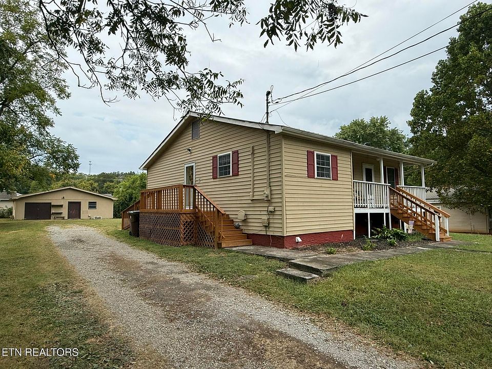 Out back, you'll find a large garage/workshop with power already connected—ideal for hobbies, storage, or even a potential guest suite or studio conversion.