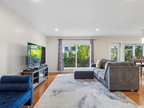Welcome to this beautifully maintained family home, in the ever-popular Stonebridge. Tucked away on a quiet crescent, this fully finished 2-storey offers 1,614 sq. ft. boasting a spacious layout designed for modern living just a 5-minute walk to Chief Whitecap and St. Kateri schools, parks, shopping, and restaurants. Inside, on the main floor you’ll find a bright, open layout with large windows, hardwood flooring with an open-concept kitchen, dining, and living area, along with convenient main floor laundry. The hardwood flooring extends through to the top level where you’ll find a generous bonus room, perfect for a TV lounge, home office, or kids’ play area. Plus, a 4-piece main bathroom, two generously sized bedrooms, and a primary suite offering a walk-in closet and a 3-piece ensuite. The fully developed basement adds even more living space with a spacious family room, bathroom, and a dedicated storage room. The backyard is private and beautifully landscaped with a paving stone patio and driveway, underground sprinklers, mature shrubs, trees, and a handy shed. The 22’ x 22’ insulated garage comes complete with built-in storage. This home also boasts numerous efficiency upgrades: Energy Star certification, R2000 compliance, a drain-water heat recovery system, HRV, humidifier, and LED pot lighting. A new water tank was installed in 2023 and furnace in 2024 for added peace of mind. Don’t miss this move-in ready home in one of Saskatoon’s most sought-after neighbourhoods- Stonebridge offers schools, shopping, easy access to downtown and University of Saskatchewan, and plenty of parks.