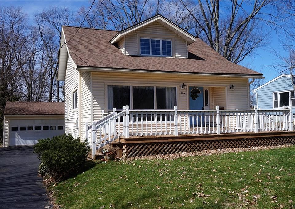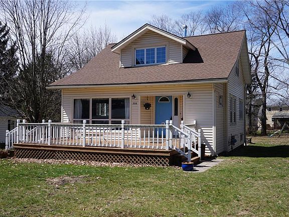 Enjoy the village location - without paying a village tax! Loved by the current owners for over 50 years, this sweet, comfy home offers a newer 2-car garage attached to a neat breezeway next to a terrific brick paver patio overlooking the massive, flat yard! Inside, the bright, renovated kitchen offers plenty of floorspace & counter/cupboard space with darling pass-through into the large dining room & front foyer/mudroom. The large front windows in the giant living room allow views of the substantial deck/porch adorning the front of the house. An efficient bdrm/full bath with walk-in shower are tucked away on the first floor near the stairs up to the 2nd floor with 3 more bedrms & another full bath with tub. Recently updated furnace & roof, newer vinyl siding + most windows replaced, too!