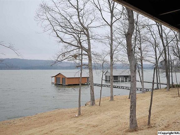 Beautiful Main Channel Waterfront home w/ Panoramic views of Lake Guntersville on 1.3 Acre. 300 feet of shoreline w/ stone seawall. Easy walk to shoreline & boathouse...no steep lot here! Relax on 55ft long Covered Porch, enjoyed year round. Home has 4 BRs/3 Baths, Open concept Kitchen & Living area w/ Stone Fireplace. H'wood floors t' out Living Area and Bedrooms...Tile Laundry & Baths. Two slip boathouse w/electric hoists and covered Deck. Large sodded yard and garage. This Lake Home is truly the complete package! Call Norm or Pam for private showing. 256-658-6069 or 256-694-6069