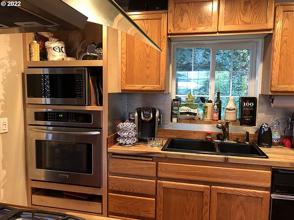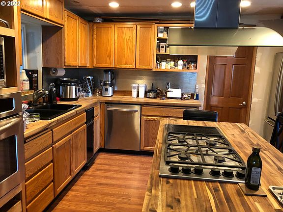 Home has large kitchen with SS appliances, trash compactor & gas cooktop. Living room is open to kitchen, 4 bedrooms, 2 baths (bedroom on main is office) 2 of the bedrooms are huge. Large Primary bedroom has jacuzzi tub. Heated tile floors in 2nd bath. Laminate flooring in living area. Unique multi-use floor plan. (Good option for airbnb!) Upstairs w/new floors. Some new painting w/more to come! Hot tub stays. Great fantastic location to historic Oregon City. Close to shopping & restaurants.