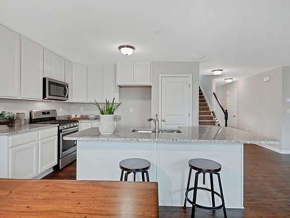 • Kitchen Features: Cabinets Stain, Pantry, View to Family Room, Stone Counters, Kitchen Island, Breakfast Room