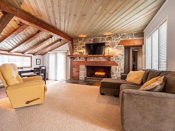 ONE OF A KIND CONDO, in the desirable Long Beach Pointe/Birch Tree Homes community. The LARGEST, and ONLY farmhouse in there. The winding sidewalk leads to this stand alone beauty. 4 bedS, with a massive master bedroom. New updated kitchen with lots of cabinets, even has a pantry! gorgeous counters and appliances. TONS of storage in this home. Formal dining room, Living room offers a stone, wood burning fireplace. a sunk in sun room is also a pleasant surprise. Upstairs offers a teenagers dream. Could be 2 beds, BUT this set of boys share 1 room, and have their own rec room for entertaining. Full bath on each level. NOW! MY favorite part of this home. Wait until you step out your back door! total privacy, 2 patios, with views to YOUR GINORMOUS pool & Club house. 2021 Brings your irrig. system, new pool furniture, and face lift to the club house..Huge windows making it a 3 seasons area. Lots of freedom with this home, you can even change the fencing for more privacy. THIS IS A MUST SEE!