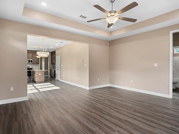 • Soaking Tub, Ceiling Fan(s), Step-Up Ceilings, 8' +, Walk-In Closet(s), High Ceilings, Granite Counters, Kitchen Island