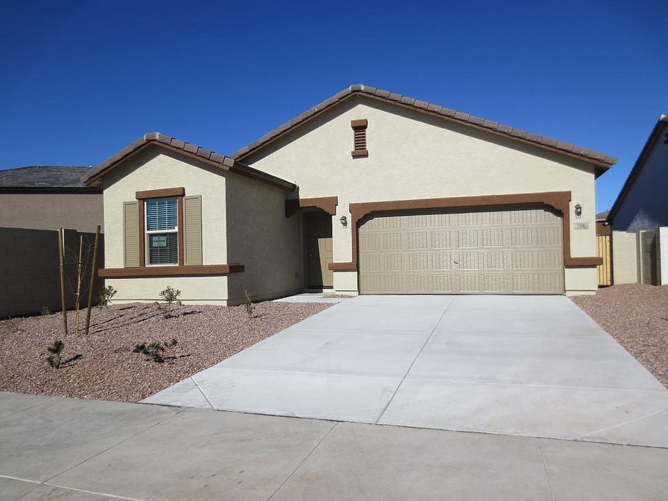 Brand new never lived in home in East Buckeye just a short drive down I-10 to Phoenix. Low maintenance landscaping, laminate flooring and an open kitchen with stainless steel appliances, granite counters and island. Great floor-plan features 3 bedrooms and 2 bathrooms! Master suite includes a private bathroom with a walk-in closet. The nearby mountain parks are also a great place for hiking, fishing, horseback riding & star gazing. Ready for you to call home! $50 application fee for each adult. Deposit is equal to one months rent plus a one time $199 administrative fee. Tenant pays all utilities. 5% rental tax/admin fee on top of base monthly rent.