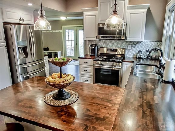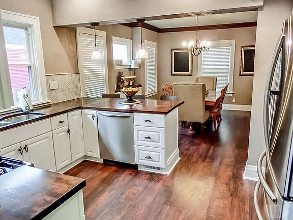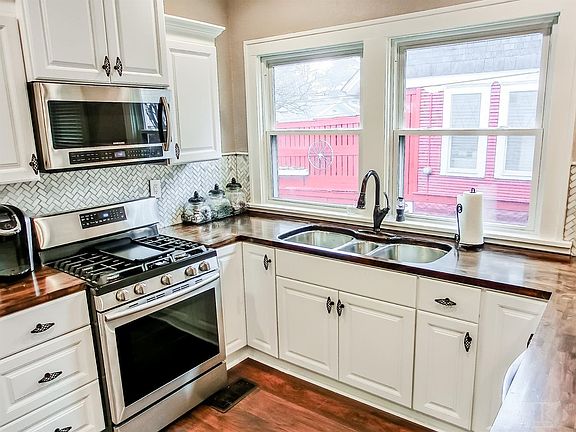 Full of CHARM! Come check out this 3 bedroom - 2 bath home with AMAZING charm and QUALITY updates throughout. NEW kitchen in 2018 with stainless steel appliances, butcher block countertops & new light fixtures. GORGEOUS white woodwork - open staircase & wood burning fireplace in living room with bookcases. Formal dining room with built in wine cabinet & laminate flooring. Walk up attic. NEW windows in 2012. 4 TOTAL GARAGE STALLS and nice lot. Call today & take a look!