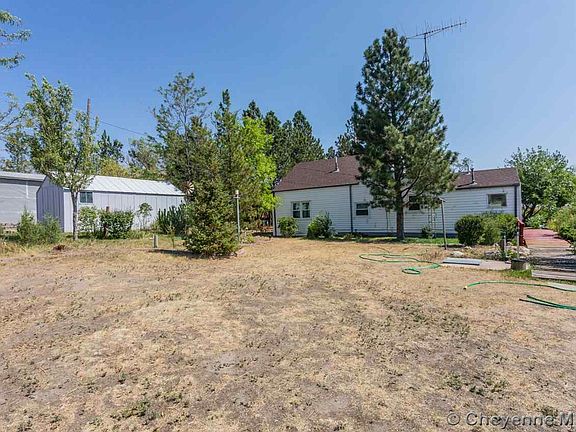 Amazing Close in County Property! This 3 bed 1 bath 1 car detached garage offers all the privacy you can imagine on 1 acre county lot. Main Floor living, hardwood floors, gas fireplace, covered patio and spacious dining room. This home is situated in a county pocket super close to I-80 and downtown Cheyenne. Plenty of space to build a great shop with ample access for your business! Home is on south water and sewer but offers well irrigation for the heavy trees and landscaping.