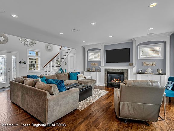 Normandy Shores - Beautiful, lagoon-front, 4-bedroom, 3 bath home custom built in 2016 to the new FEMA flood requirements is elevated on pilings & offers great waterfront living. The bright & airy open floor plan boasts living room w/ gas fireplace, eat-in kitchen, & dining area. Additional features include a downstairs bedroom, upstairs laundry room, sprawling master suite with Princess balcony w/bay views, built-in speakers inside & outside, & hardwood floors throughout. The property features large deck off the living & dining rooms, 45 ft. of water frontage w/vinyl bulkhead, large trex deck, outside covered seating area, ample storage space/rec space underneath the raised home, & 2 car garage.