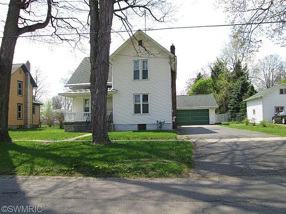 Traditional home with attached over sized 2 car garage plus large workshop with wood stove. Garage has front & rear overhead doors. Updates include roof shingles, heated gutters on front porch roof, new decking on front porch, vinyl tilt-in replacement windows, newer furnace and central air. Only register upstairs is in the bathroom. Nice sized kitchen with plenty of cabinets and counter space. Stove, refrigerator, washer, dryer and freezer included. Formal dining room large enough to accommodate family gatherings & large table with hutch. Three bedrooms and two bathrooms (upper level bath 8x11 with tub shower, main level bath has shower). Main level laundry room has washer, dryer, freezer and storage space. Mud room/breezeway off garage is great for winter boots and coats. Covered patio area with room for a picnic table and grill. Nice wide paved driveway, plenty of parking. Great home in good condition, minor updating would make a wonderful family home.
