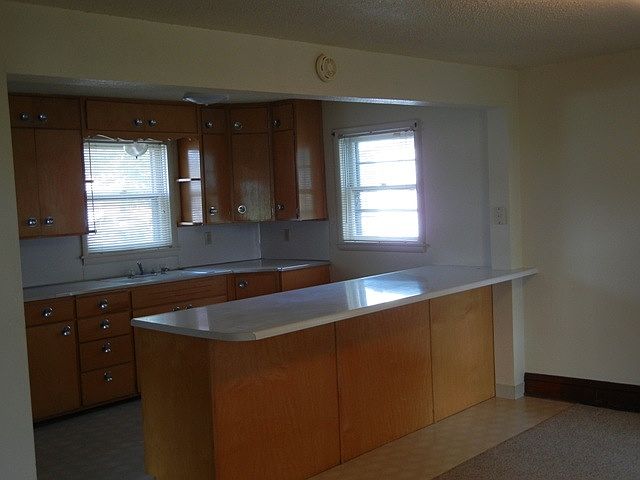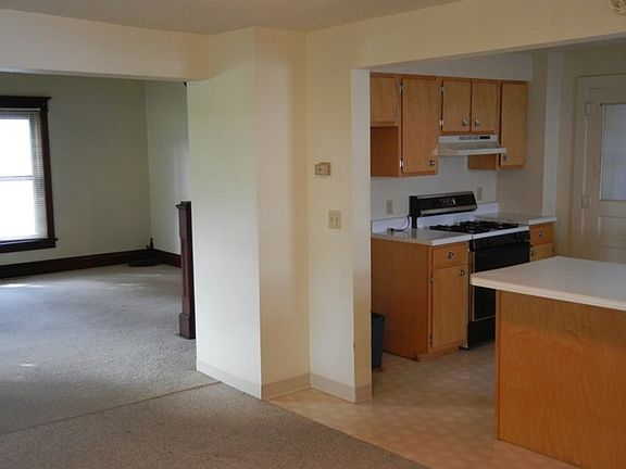 1 1/2 story 3 bedroom, 2 bath home. This home has open kitchen with island seating and formal dining area. Dining open to the large living room. Beautiful dark wood work thru the home. Main floor laundry. All 3 bedrooms are in the upstairs and have carpet and closets. This home is ready for someone to move into.