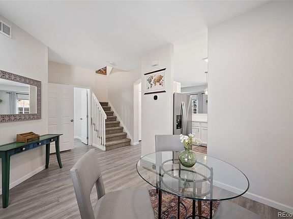 Introducing this wonderfully updated three bedroom, two and half bath townhome with two-car attached garage! Step inside and be greeted with an abundance of natural light pouring through the recently installed windows and sliding door with complimenting high ceilings. The main floor offers the living room, dining area, kitchen featuring modern pendant lights, stainless steel appliances, quartz countertops, and pantry plus a half bathroom and laundry room. Moving along upstairs you will discover the bright primary bedroom with vaulted ceilings. Escape to unwind in your spacious primary en-suite featuring a soaking tub, skylight and custom closet! Upstairs also offers generous sized secondary and third bedroom, linen closet and full bathroom. Get ready to enjoy the low-maintenance xeriscaped backyard which is fully fenced in and perfect for relaxing under the pergola on those warmer sunny days. This townhome truly has it all with a superb location. Close access to I-25 & I-70, parks, trails, restaurants and shopping!
