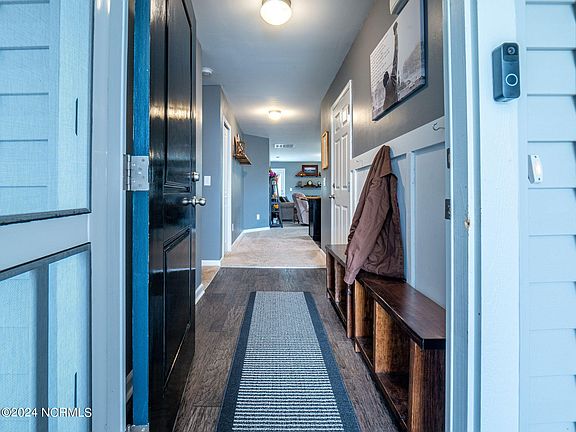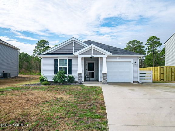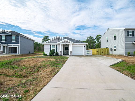 Welcome to The Home place community in Holly Ridge. This community offers affordable living close to all of the areas amenities and beautiful updated homes! This single story home offers an open floor plan with 3 bedrooms, 2 full bathrooms, a single car garage and a private back yard. The kitchen has ample counter space with butcher block counters, includes all appliances and a large island over looking the family room. The master suite is located off of the back of the home and offers a large walk in closet, dual vanities and a step in shower. There are two additional bedrooms at the front of the home and a shared full bathroom. The back yard is good size and has a fire pit with pergola ready for you and your family & friends to enjoy all year long. Call and schedule your showing today.
