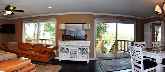 Elegant brick and stone lakefront estate that's all updated and totally move-in condition. Secluded on a wooded point accessed by a beautifully landscaped private driveway. Privacy is ensured by 360 feet of shoreline, the largest residential lot at the lake. Beautiful panoramic water views. Two levels of great living (and playing) spaces, with 4 bedrooms and 4 full baths. On main level, the large foyer leads into the 29 x 15-foot combined living and dining spaces, with a wall of windows to view the lake and the grounds. And access to the larger recently built deck. At one end is a stone fireplace for those Fall and Winter evenings. Updated kitchen has dinette/breakfast area, also viewing the lake. And a nearby first-floor laundry. At the opposite side of the main level is a large Master Bedroom Suite with views of the lake. Plus another bedroom for family or guests. Then there's the spacious full walkout lower level, offering a 39 x 14-foot family room and wet bar area, also with walls of windows for the views and access to the large paver patio. Also has another stone fireplace. You can also access the steps leading to the 2-story boat dock with upper-level deck. Off the bar is a 21 x 14 Sun Room with 4 skylights. Then there's the second Master Bedroom Suite for guests or related living. Plus a 4th bedroom presently set up to handle multiple people. A 23 x 6-foot Gallery can be used for artwork, gaming or whatever your needs require. We could go on and on, but it's best for you to come see it and discover other features yourself.