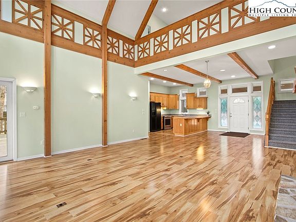First time on the market! This home has absolutely stunning architecture with river frontage (NO flood zone) with easy access to enjoy year around on 3 lots for plenty of privacy. You can sip your morning coffee on the expansive deck with river views in every direction. This home has had new flooring , a beautiful brand new down draft range, newer dishwasher, large newer water heater, newer furnace and Generac generator installed. This home is suitable for someone who needs one level living as the master, living room, laundry and kitchen are all on the main level. It has a huge unfinished basement that could be finished for added square footage but now serves as a two car garage plus storage as well as a workshop area. Linville Land Harbor offers many amenities including pickleball, swimming pool, clubhouse, hiking trails, trout fishing , playgrounds and more plus the POA covers water, sewer, cable, internet, and trash pick up. This mountain home on the river is a dream and won't last!