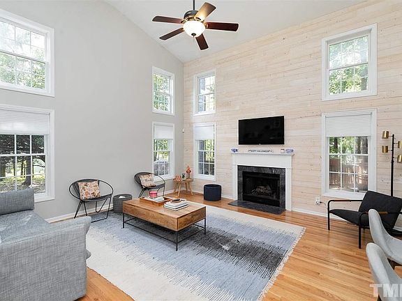 Prime Cary location!!Beautifully maintained 4 BR home featuring cathedral ceilings, site finished hardwoods & a huge kitchen w/island. Large deck with grilling pergola overlooks a private, flat, fenced back yard. New carpet on stairs, newer kitchen appliances and shiplap in family room. Gutters added this year. Storage in attached shed. Playset to convey. 2-10 Home Warranty! Walk to pool, neighborhood park, pond and Cary Greenway trails. Minutes to schools, shopping, dining! Convenient to RDU & RTP.