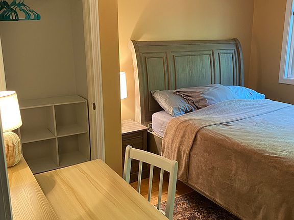We have a lovely fully furnished bedroom available for rent in a shared communal large/fully furnished house in the heart of the North East Kingdom of Vermont. Our roommate is moving to an off grid cabin in VT! The house is on 40 acres with an amazing view of burke Mountian. It's minutes from the Kingdom Bike Trails, Burke Mountian Ski Reaort, and Lake Willoughby. It's also 5 minutes from downtown East burke, 15 mins from downtown Lyndonville and 25 minutes from down town St. Johnsbury. The fully furnished house includes communal spaces such as, a large kitchen, two bathrooms, 2 large living rooms, an atrium lounge, dinning room, mudroom and washer and dryer. The living room has a large smart tv and streaming services with great wifi, wrap around outdoor porch with grill, outdoor fire pit, space to have a veggie or flower garden. Great wifi for working professionals, travel nurses, working from home, plenty of study spaces for students. This room has a closet, and large window looking out to the forest. Rent for the bedroom and shared communal spaces is is $750 plus electric, heat/propane and plow (very minimal in the summer months)The propane, electric and plow are split up between the number of people in the house. The utilities that are included are trash, internet, lawn maintenance, and water. We are open to a 3-6 month lease. My name is Ash, wood-shop elementary teacher and artist. I make jewelry and lamps that I sell at art/craft shows. I currently am renovating buildings on the property and have started a food forest in the lower apple orchard. I also have small campsites I rent out in the summer in that separate lot. I love gardening art and dancing. Would love to show you all the great summer swim and hiking spots or grab a drink after work. I have 2 lovely affectionate cats named fern & Kolbie. Anna is an elementary music teacher. She also is a talented singer, dancer and theatre performer. She loves playing music and thrift store shopping. -Lease can be 3-6 months with possibility to renew -$750 a month with $750 non refundable holding deposit (if you decide later to not move in deposit is non refunded. Upon possession of the room the Holding deposit turns into security deposit. If there are no damages upon move out date, the security deposit is refunded. -Included Utilities are, trash within reason, internet, lawn maintenance, water. Propane, electric and plow are split equally between the number of current housemates. Usually is 4. -No cats or dogs unless permission and pet deposit is received. -Tenant agrees to properly participate in communal chore wheel/ cleaning duties weekly.
