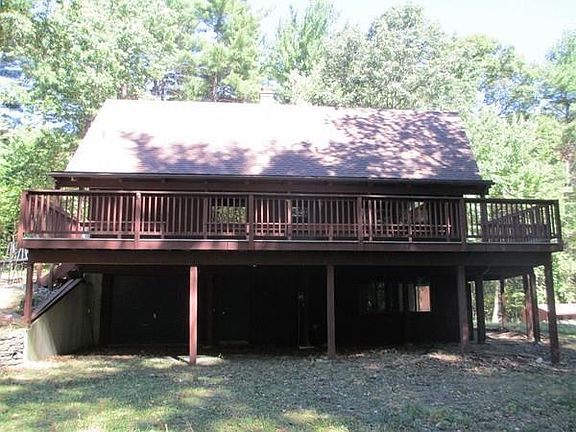 Peace and quiet in this unique contemporary hideaway. Lightly wooded 2 acre setting. Private yet just 10 minutes to Northampton center. Open floor plan with 2 bedrooms, 2 full bathrooms, 2 living room areas each with outdoor access. Large windows on the East and South to enjoy the warmth of the winter sun. Huge deck off the living room and dining area. Open and airy with spacious rooms and cathedral ceilings. Stay warm in the winter with the included woodstove and cool in the summer with central AC. Main level is an open floor plan with the kitchen flowing into the dining and living areas. Gorgeous views from anywhere in the house from the floor to ceiling windows. A nice size bedroom and full bath on the same level. Upstairs is an open loft area leading to a 2nd large bedroom with double closets and another full bath. The lower level of the house has a one car garage with laundry and finished living area with 2 windows and sliding glass doors.