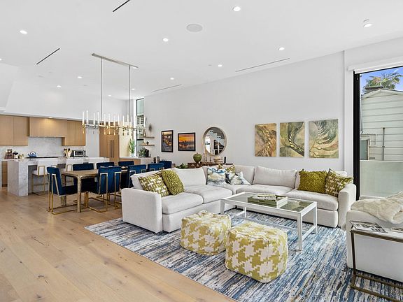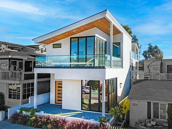 Beautifully furnished rental! NOTE: available during the month of June for $8,000 per week. During the off-season, available starting in October for $6,000/week, $24,000/month. Stunning 3-Bedroom, 5-Bath Balboa Island Tri-Level Contemporary Home with Elevator, 206 Onyx Avenue combines the very best of modern design with an ultra-cool coastal vibe! The open floor planned first level beckons through an oversized front door, or through a wide set of La Cantina folding doors. Once inside, a floor-to-ceiling Bianco Carrera marble fireplace compliments the 12-foot ceilings. The gourmet kitchen showcases a large Carrera marble island with white oak cabinets, a Bertazzoni 48-inch range with griddle, Sub-Zero refrigerator, Bosch dishwasher, and Sharp microwave drawer. The second level, reached via elevator or floating staircase, offers 3 large bedroom suites. The high-ceilings in the master bedroom provides a La Cantina door set opening to a large deck with South Bayfront views, and a spa-quality bath with double sinks, separate shower, and freestanding tub. The third-level roof deck is set up for entertaining with both covered and open space, food preparation area, and a 3/4 bath. Deluxe amenities of the home include central AC, white oak floors, and ELEVATOR. Only one block to Balboa's friendly village center, 206 Onyx is an incomparable Island getaway!
