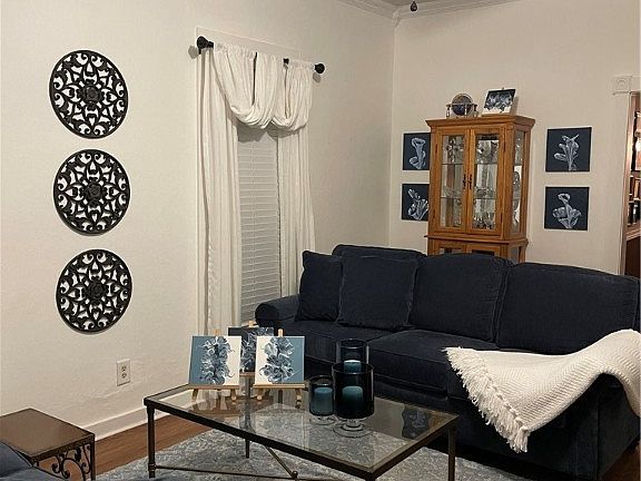 Charming home with cozy comfort and modern appeal! Welcome to this inviting 2-bedroom, 1-bath home offering 1200 square feet of comfortable living space. Step inside to find a lovely layout with a spacious living area, newer luxury vinyl flooring, and lots of storage space. The large kitchen features a built-in range, wall oven, refrigerator and dishwasher. The open floor plan includes a dining area with a lovely bay window that looks out onto the back yard and patio. The master bedroom has a dressing area that leads to the bathroom that includes a newly renovated shower. The closet in the master bedroom includes a library-style ladder for accessing additional storage above. Custom window treatments throughout the home. Detached 2 1/2 car garage offers lots of space for vehicles and extra room for hobbyists. Exterior motion lights. Whether you're a first-time buyer, looking to downsize, or ready for a fresh start, this home offers the perfect mix of character, comfort, and convenience.