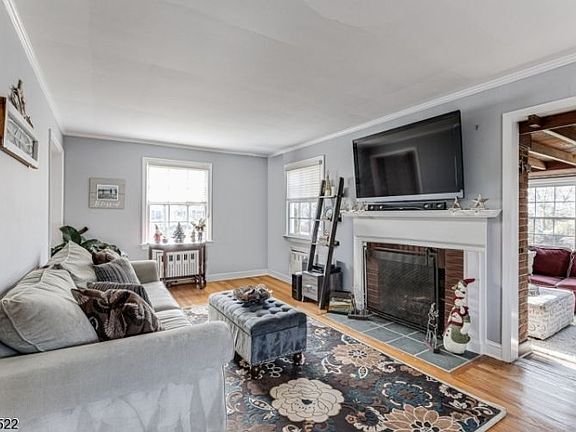 Picturesque, Custom Colonial located on a tranquil, tree lined, dead end street. First level features living room with gas fireplace, updated kitchen, dining room, family room with beamed ceiling plus an updated powder room. Hardwood floors throughout. Second level boasts an impressively large master en-suite with sitting room, full bath with tub and separate stall shower, and a huge walk in closet. An additional 3 bedrooms and updated full hall bath complete this level. Full semi-finished basement plus 2 car oversized garage. Moments to vibrant downtown Cranford, voted the #1 town in NJ, Nomahegan Park, award winning schools and NYC transit. Not in a Flood Zone. Home Warranty included.