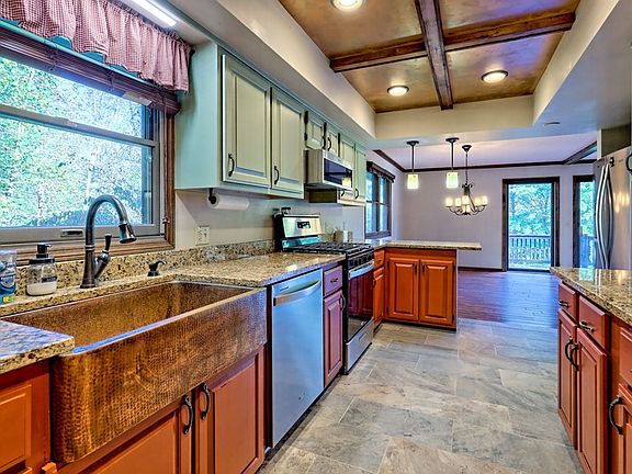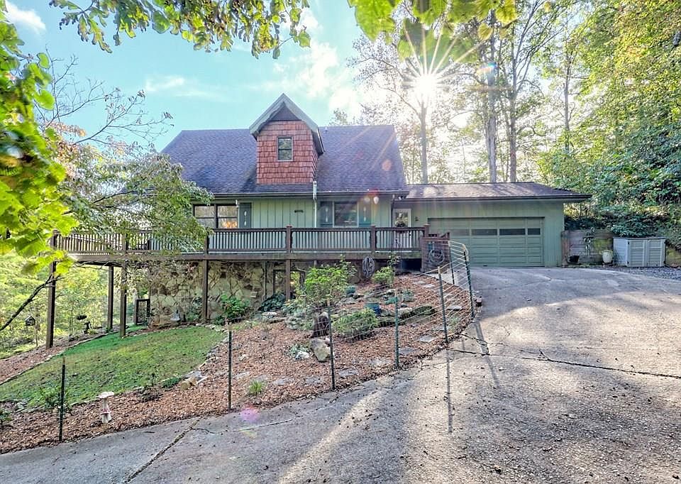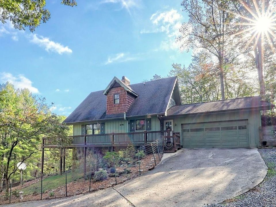 Desirable Tusquittee Community, 3BR/3BA Craftsman has lots to offer! Spanning 3 levels, each with its own separate living space, bring the inlaws! The main level features an updated kitchen with new tile flooring, granite countertops, teardrop glass cabinet fronts, a copper farmhouse sink, and a new gas range. The dining & living areas showcase wood plank flooring & a wall of windows framing stunning mountain views. Step outside to the large wraparound porch, perfect for enjoying the fresh mountain air. A main-level bedroom features an updated bathroom with a custom wood vanity, including a copper vessel sink, and designer tile/glass shower. The upper level presents its own unique space, with beautiful tongue-and-groove ceiling with wood beams, featuring flex room, full bath with a custom travertine tile shower, and a bedroom that offers access to a private screened deck. The terrace level has its own exterior entrance, parking, in addition to a private deck, living room, dining area, kitchenette, bedroom, bath, laundry with storage. With windows on three sides, this level is filled with natural light. Well-designed landscape with low maintenance terraced garden beds, a greenhouse for year-round gardening, and 2 firepits. The spacious garage includes a workshop, storage area, and laundry facilities. This tandem garage is designed with drive-through access to the circular driveway, with one side paved in concrete for common use and the other side in gravel for better traction during inclement winter weather. Thoughtful improvements include a new Generac whole-house generator, hot water heater, flooring, stainless-steel appliances, updated baths, and fixtures. Great location on 1.02 private acres in a community of mountain homes and rolling farmland. Minutes to Ingles, charming downtown Hayesville, Lake Chatuge boat ramps, and Mountain Harbour Golf Club.A must-see in person to truly appreciate the beauty and uniqueness of this mountain escape!