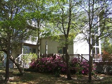 2300 sq ft home with 3 bedrooms and 2 full baths located across from the intra-coastal waterway! Private lot with beautiful natural landscaping and live oak trees. Water access and water view! Surround sound in the large open living area with cathedral ceilings. Enjoy the water views from any of the 3 stories of this home! Lots of storage and decking in this fine home! Enjoy the summer breezes on your 2nd floor private screened in porch or from your 3rd story balcony! No HOA dues! Great schools and great location! Call today for your private showing!