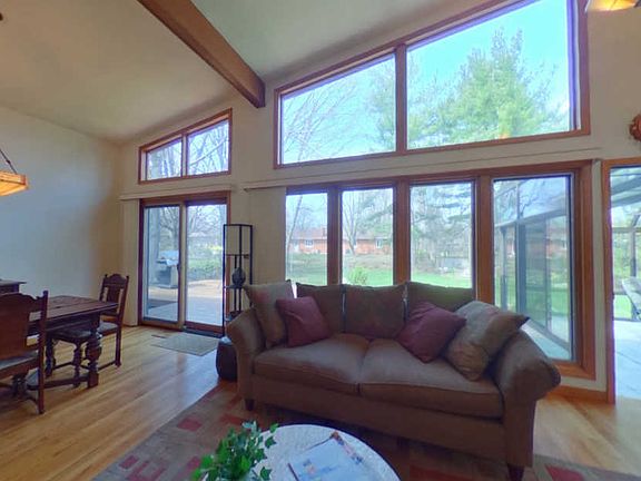 Have you been looking for a mid-century modern home with style AND updates! Look no further than this marvel, located on a cul-de-sac! A lovely foyer and large coat closet greet you as you enter, and the expansive hardwood floor and wall of windows in the living/dining room beckon you to stay a while. Enjoy the 2-story wood-burning fireplace in the living room. The eat-in kitchen boasts granite counters, pantry cabinet, stainless steel appliances, and plenty of cabinets with slide-out organizers. The huge sunroom overlooks the large professionally landscaped yard with koi pond and waterfall, and has a ventless gas fireplace for year-round enjoyment. The master suite offers a walk-in closet. Large bedrooms offer room for everyone. The lower level shines with a spacious family room PLUS a sunny office. Enjoy a dedicated laundry room and a separate workshop! Both bathrooms have been updated, too! Pella replacement windows & trim. Roof '05. Water heater 2019. Come visit today!