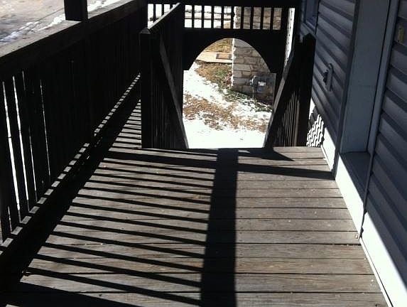This spacious 850 square foot 2nd floor unit is nicely updated with a fresh look. The property is well maintained in an excellent location with many nice features. The covered balcony runs the whole length overlooking the street side of the house. This is the upper unit of a 2 unit home. The property is 0.14 acres with a wooded area providing shade in the backyard. The open kitchen includes a wrap-around corner shaped cabinet section with the stove, sink and refrigerator all within a convenient configuration. The kitchen updated cabinets are in between the two large bright windows. The stove and refrigerator are included. The laundry alcove includes washer and dryer hook-ups. The laundry area is centrally located and on the same level. The unit includes a large bedroom and another separate front room. The walk-in closet is located in the bedroom. The home has low pile carpet and vinyl flooring for easy cleaning. The bathroom includes modern fixtures, vanity and new flooring. Located North of Highway 50 in Jefferson City Old Town Revitalization Area. Convenient highway access. Far enough from the highway to avoid the noise. Walking distance to popular entertainment and restaurants such as The Mission, Prison Brews, O Donoghue s Steaks Seafood and near to the Ellis-Porter Riverside park, Penitentiary Museum and state capitol. Water and sewer are provided. The heating is forced air. 1 bedroom, 1 bath down unit available now. 1st month rent and security deposit, application, lease and background/credit check required. Smoking on the porch is okay. NO PETS! Owner pays for water, sewer and trash.