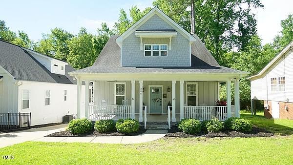 Rare opportunity to live in custom-built home with high end finishes in charming, downtown Fuquay Varina. Home has been meticulously cared for and has multiple seller upgrades including custom built-ins, moldings, custom plantation shutters, site finished white-oak hardwoods throughout the home, fenced in backyard and designer patio. Walk-able to restaurants, parks and all the great activities and events that the town has to offer. Low maintenance yard leaves plenty of time for enjoying downtown concerts, festivals, restaurants, shops & parks. 4 bedrooms, 3 full baths; first floor primary bedroom and bedroom number 2 on the main floor would make a great office. Site- finished White Oak Hardwoods in all downstairs living areas and all 4 bedrooms. Tiled baths and laundry room. Second floor bonus has LVP flooring and custom built-ins. No Carpet. Enjoy your fireplace with gas logs in the family room and entertaining in your gorgeous kitchen with an incredible island, upgraded stainless appliances and open concept to your dining and family room. Don't miss the large closets and unfinished storage area upstairs and the unfinished workshop/storage room on the lower level. Indoor - outdoor living is more than just a dream in this home - it's reality. Enjoy dinner on your extra large front porch or sip your coffee surrounded with a view of the pines on your screen porch. Take a stroll to the backyard to enjoy the lovely patio and fenced in yard for the kids, puppies or gardener to play. 2 car garage with rear entry and parking pad provide privacy and additional space for entertaining, games, riding bikes or outdoor movies. This is a rare opportunity to purchase a fantastic home with all the right enhancements in a great location - downtown Fuquay Varina!