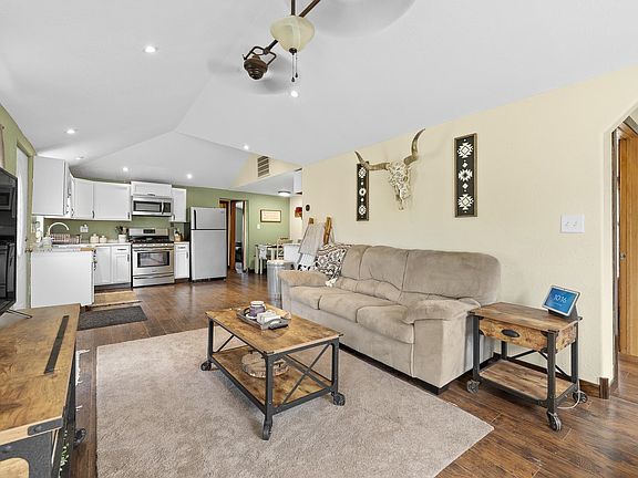 Listed by Pete Jensen, KWBH, 605-484-6713. A recently updated home at an affordable price? Yes, please! *Enjoy the ease of one level living in this updated ranch style home on over 1/3 acre lot with NO COVENANTS in Piedmont, SD! *Offering 3 bedrooms, 2 bathrooms and 1,466sqft this home is ready for new owners *This home offers an open concept layout, with a comfortable living room that flows into the kitchen and dining areas *Vaulted ceilings, great natural light and new LVT flooring throughout these spaces *Corner kitchen with painted cabinetry, stainless steel Frigidaire appliances and a window overlooking the back yard allows for easy meal prep, and the nearby cozy dining area provides convenient space for meals with family and friends *Bonus pantry wall for added storage or use as your dream coffee bar set up *Separate laundry room area with folding shelves and crawl space access *2 bedrooms and 1 guest bathroom in back of the home *Master suite on other end of the home, with a walk in closet, ensuite bathroom with tiled walk in shower, and private patio access for your morning cup of cofee *Outside has a large fenced yard- great for kids or pets *Detached 2-car garage is oversized and provides great space for parking or hobbies. Added don't miss updates: new furnace and smart thermostat in 2023, new plumbing in 2022, freshly painted interior and new flooring and trim throughout. Convenient location and a move in ready home, what more could you hope for? Call today!