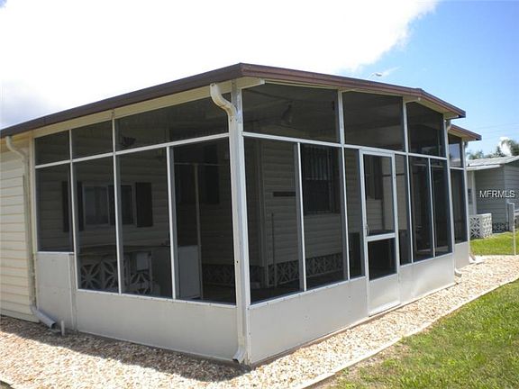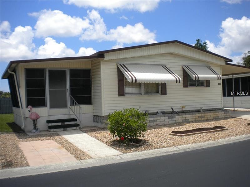 Come retire in the Florida SUN! This furnished 2 BR / 2 BA mobile has upgrades such as new laminate floors, 1 yr old washer and dryer and newer AC. Home is located in the pet section of Plantation Village, a gated 55+ community. The HOA is $220 per month and includes water/sewer, trash, cable and maintenance free living. There is a heated pool that can be enjoyed all year round. The clubhouse has many activities, a library, fitness room and shuffleboard.