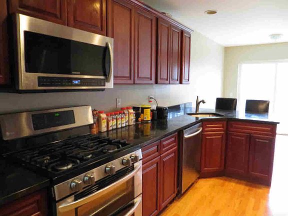 Beautiful 3 Bedroom 2.5 Bath Townhouse with a 1 Car Garage. Updated EIK kitchen with granite countertop, 1 year old energy star appliances & SGD to the patio. Enjoy some privacy as this unit backs up to the woods. Living room with fireplace. Gleaming hardwood floors throughout. Use your imagination in the finished storage area of the basement. Great commuter location. You will not be disappointed.