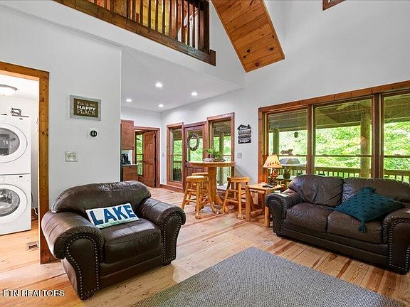 Twin Cove Area............Looking for the perfect lake getaway that don't break the bank or your retirement account? Maybe you want that private Gatlinburg cabin feel but want all the excitement that Norris Lake has to offer? Then look no further. This cabin is located within walking distance to Twin Cove Marina where the boat slip is 'deeded' (lease is transferable to the buyer for their use currently - $240/month) yet it is tucked away in the trees for lots of privacy. The home features 2 master bedrooms each with a full en suite bath. There is one of the master bedrooms on the main level and one on the second floor along with a large loft (overlooks the living area) that currently sleeps 4. In addition to one of the master bedrooms, the living room, dining/kitchen, laundry and a half bath are all on the main level for added convenience. Outside features a large covered back porch with two levels to spread out and enjoy all that nature offers. There is a full unfinished basement that is accessible from outside that you could finish out and make more space. The cabin comes fully furnished and turnkey just in time for summer. Current owner pays $190/month HOA fees which INCLUDES cable TV, high speed Comcast internet, access to the pools/grounds, dumpster usage and snow removal. This could be your home away from home! Buyer and/or Buyer's Agent to verify all information to their satisfaction prior to closing.