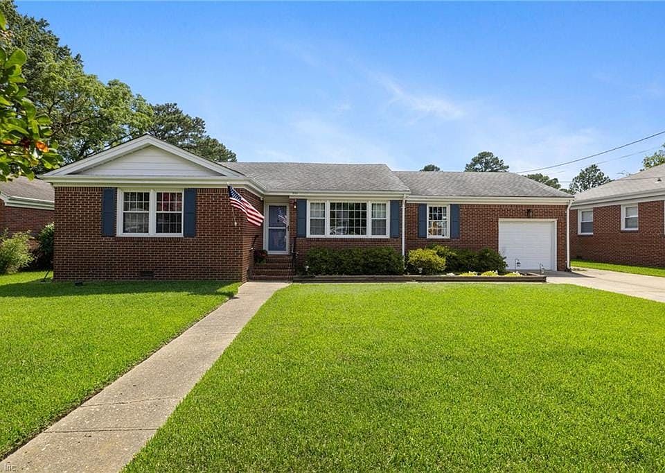This charming & custom-built 1961 brick ranch, nestled in the highly sought-after waterfront community of Merrimac Point. Meticulously maintained, this home offers 3 spacious bedrooms, 2 full baths, & over 1,900 square feet of comfortable living space. The home boasts numerous recent updates, including vinyl replacement windows and a new roof in 2013, as well as an updated HVAC system. The bathrooms were beautifully remodeled in 2024, adding modern convenience and style. Gleaming hardwood floors grace most of the home, enhancing its timeless appeal. The light-filled living and dining rooms create an inviting space for entertaining, while the remodeled kitchen features elegant granite counters and a convenient coffee bar. A cozy family room opens to an all-season sunroom, providing a perfect spot to relax and enjoy the serene surroundings. Positioned for living convenience, this home offers easy access to the Naval Medical Center, Downtown Norfolk, and Portsmouth Coast Guard Station. 2024-09-18