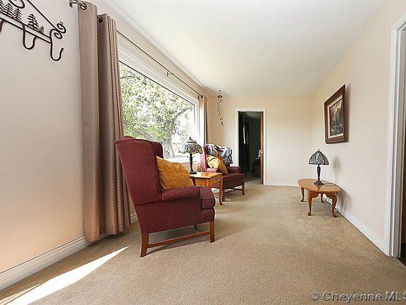 Charming ranch with one level living in north Cheyenne. Brand new kitchen and master bath. Sun room, cozy family room with a wood burning stove, main floor master and main floor laundry, brick fence, well maintained yard and an oversized garage with a workshop area. This home has it all!