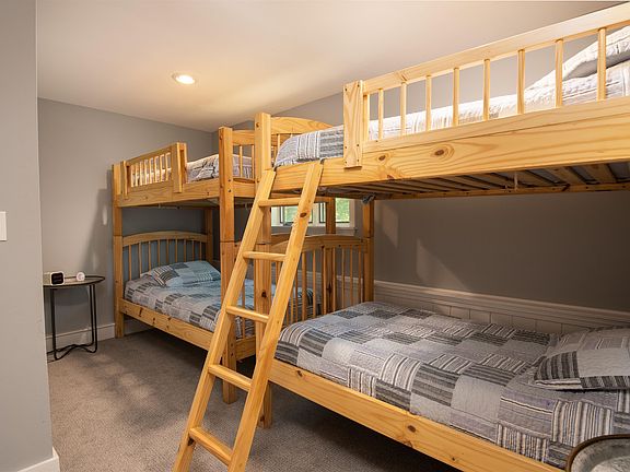 With five bedrooms, a large indoor recreation space and a gourmet kitchen, this spacious modern home is the ideal place for family time, entertaining, investment property or just relaxing in the beautiful mountains of Vermont. Located just minutes away from Killington's four-season mountain resort, this home strikes the perfect balance between quiet, private setting and action-packed location convenience. Interesting modern architecture and airy, high-ceilinged living areas add to the spacious feel. You'll find two bedrooms on the ground floor, one on the second floor and two more on the third, including a primary ensuite bedroom complete with a whirlpool tub and walk-in closet. The second floor also houses a well -appointed kitchen with custom cabinetry, countertops and high-end appliances, as well as a large living area with high pine ceiling and a wood fireplace that lends a cozy feel. A pine-paneled two-story recreation room includes a pool table and plenty of space for games, TV and relaxing. Right outside the door, the large ground floor deck features a hot tub, and an additional deck on the second floor expands the available entertainment space. Call today to schedule a showing.