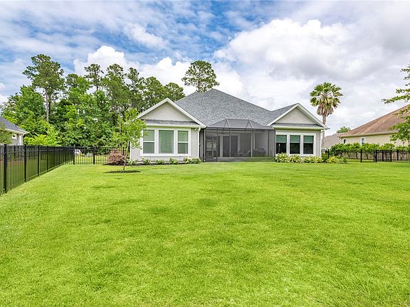 LUXURIOUS FOUR BEDROOM ON A LARGE LOT WITH WATER VIEWS IN FIDDLERS COVE. THIS NEARLY NEW HOME IS CONSTRUCTED OF LOW-MAINTENANCE STUCCO AND FEATURES A SPACIOUS ATTACHED 3-CAR GARAGE WITH A MUD ROOM ENTRANCE. RELAX ON THE SCREENED LANAI INSIDE THE FENCED BACKYARD WITH A LAKE VIEW. THIS LOCATION OFFERS EXTRA PRIVACY BECAUSE THE PROPERTY BEHIND THE LAKE IS OWNED BY THE HOA. STEP INSIDE TO A STUNNING LIVING AREA THAT INCLUDES WOOD-LOOK TILE FLOORS THROUGHOUT. THE OVERSIZED FAMILY ROOM FEATURES A GAS FIREPLACE FLANKED WITH BUILT-INS. THE EAT-IN KITCHEN IS EQUIPPED FOR A CHEF WITH A GAS RANGE AND TWO ADDITIONAL OVENS (ONE IS A MICROWAVE COMBO), A TRASH COMPACTOR, AND TWO PANTRIES. THE LARGE BREAKFAST BAR YIELDS ROOM FOR THE WHOLE FAMILY TO GATHER ROUND WHILE YOU’RE WHIPPING UP YOUR BEST RECIPES. THE INDOOR LAUNDRY MUD ROOM BOASTS LOADS OF STORAGE AND A BUILT-IN MUD BENCH. YOU WILL LOVE THE PRIMARY BEDROOM SUITE OFFERING A SEPARATE SOAKING TUB AND TILED WALK-IN SHOWER ALONGSIDE A DOUBLE VANITY WITH MAKEUP AREA. THE PRIVATE WATER CLOSET AND SUPERSIZED WALK-IN CLOSET COMPLETE THE PRIMARY SUITE. THIS SPLIT PLAN INCLUDES TWO ADDITIONAL BEDROOMS AND A FULL BATH ON THE OPPOSITE SIDE OF THE HOME WITH THE FOURTH BEDROOM AND THIRD BATH LOCATED JUST OFF THE FOYER. DON’T MISS THE WATER SOFTENER SYSTEM, SPRAY FOAM INSULATION IN THE ATTIC (THAT INCLUDES A STORAGE AREA), GAS TANKLESS WATER HEATER, AND AUTOMATED WINDOW SHADES IN THE FAMILY ROOM AND DEN. FIDDLERS COVE OFFERS LAWN MAINTENANCE INCLUDED IN THE HOA DUES WITH ACCESS TO A COMMUNITY POOL, PLAYGROUND, FITNESS, AND MORE. THIS HOME IS LOCATED NEAR SCHOOLS, SHOPPING, DINING, AND MEDICAL FACILITIES. EASY QUICK ACCESS TO I-95 FOR AN EASY COMMUNITY TO BRUNSWICK OR JACKSONVILLE.