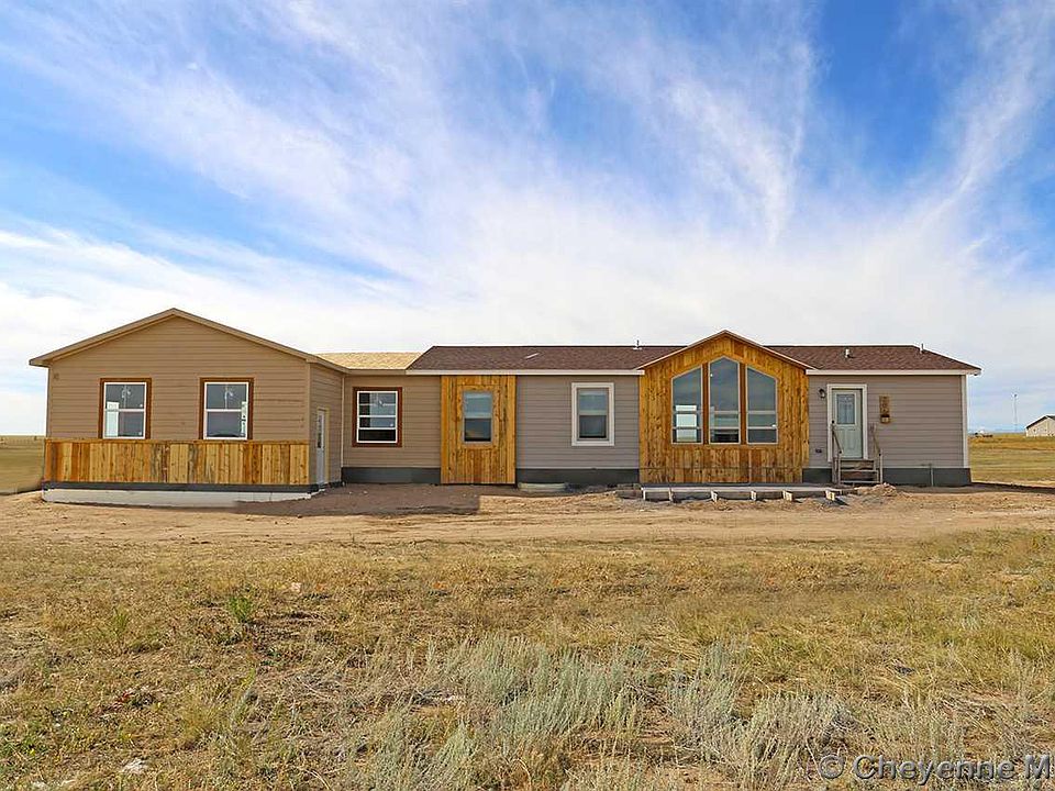 Spread out in almost 1600 finished sq.ft., 8.82 acres, near the Colorado border south of Cheyenne. The unfinished dry walled basement is waiting for your finishing ideas. Stamped concrete, covered front porch, ICF foundation walls. Horses and 4-H animals welcome.