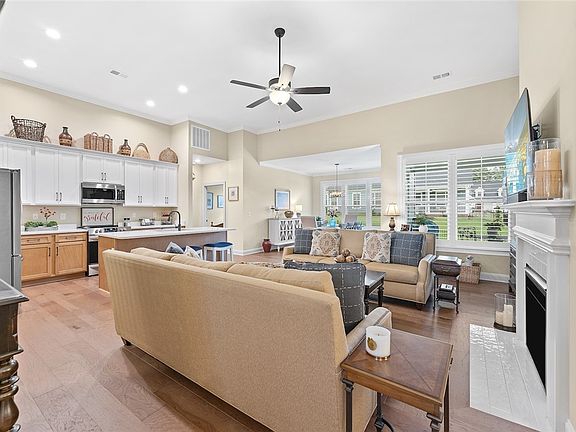 Introducing 206 Rockpine Dr., a remarkable one-level home offering an exceptional blend of style, comfort, and functionality. Boasting 3 bedrooms and 2.5 bathrooms, this residence provides a spacious and inviting environment that is perfect for both relaxing and entertaining. Upon entering, you'll be greeted by the elegance of 9-foot ceilings throughout the home, creating an open and airy atmosphere. The family room and kitchen take center stage with their impressive 12-foot ceilings, enhancing the feeling of grandeur and allowing for an abundance of natural light to flood the space. Step into the dining and family rooms, and you'll find an added touch of sophistication with plantation shutters, providing both privacy and elegance. Hardwood floors throughout the home exude timeless beauty and are not only visually appealing but also easy to maintain.