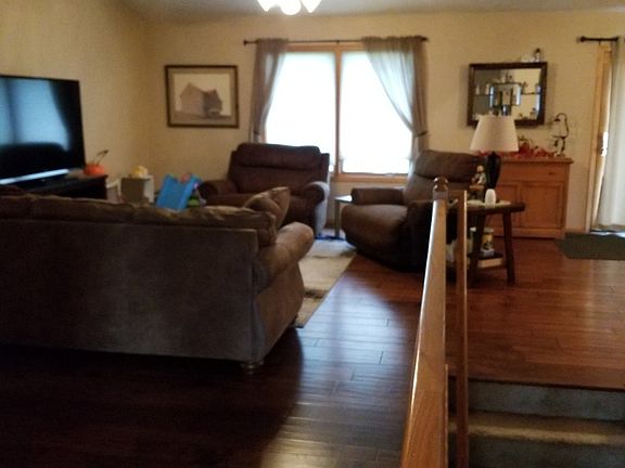 Beautiful 3 bedroom, 2 bath home with hardwood floors and vaulted ceiling.Open living room area leads to a dining room and kitchen.Master bedroom has a walk in closet and private master bathroom. 1st floor laundry. Large partially finished basement. 2.5 attached garage.Deck off the dining area leading to the back yard. heating, air conditioning, new as 2018 new water heater as of 2017.