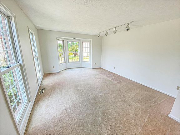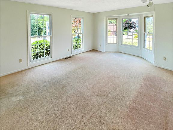 Original owner offering an appealing all-brick home with unmatched curb appeal and a governor's driveway. This versatile floor plan offers numerous living options. Center hall entry, spacious living room with bay window. Banquet sized dining room and adjacent den w/vaulted ceiling, both with hardwood floors. Kitchen features a center island, granite counters, new flooring, and bay-windowed dinette open to the family room. Convenient 1st floor laundry and two car attached garage. Upstairs there is a large master bedroom w/vaulted ceiling, full bath w/dual vanity and a walk-in closet. The second bedroom includes an adjacent sitting room or den, which could also be a 5th bedroom, both with new carpeting. Huge lower level, two finished rooms plus large unfinished area and a full bath. Updates include roof, furnace, central air. Lovely corner lot in a quiet cul-de-sac neighborhood, only 5 minutes to I-79 and close to tons of shopping, restaurants, Top Golf in the Newbury complex!